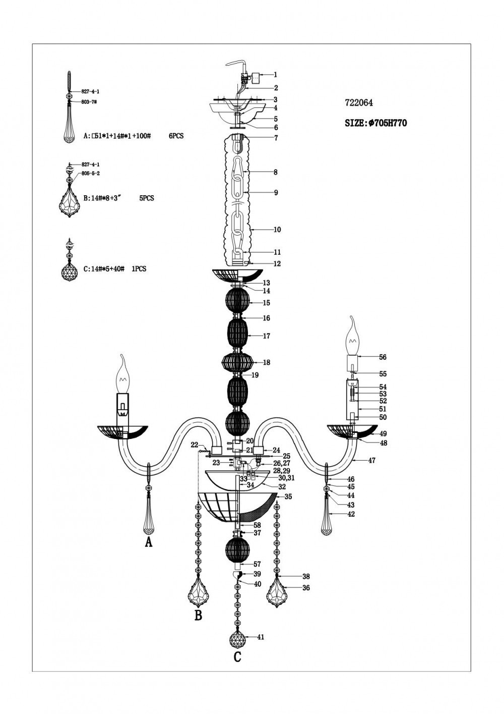 Lightstar (MD 300013-6) Люстра подвесная CRISTA 6х40W E14 ХРОМ, 722064